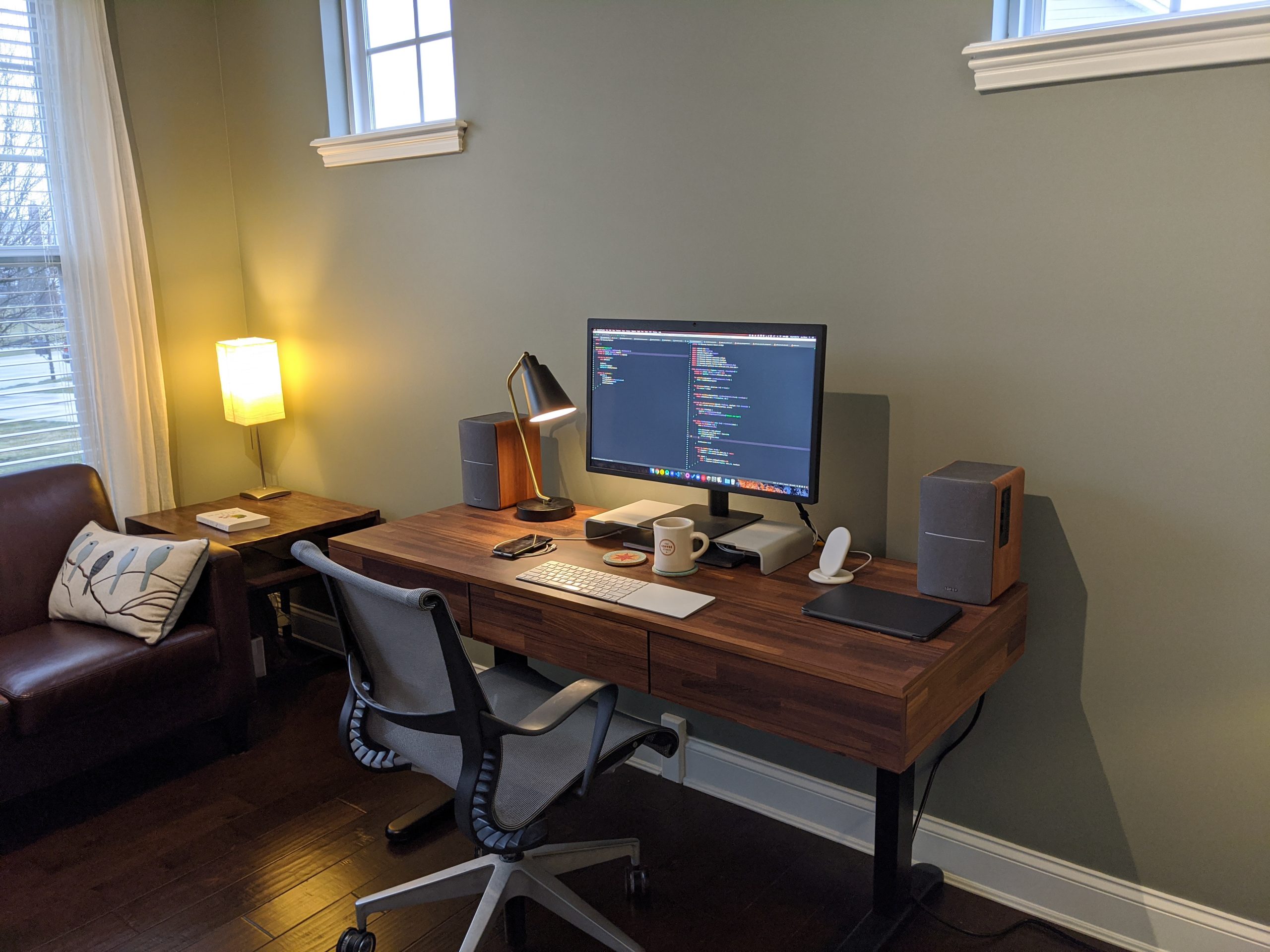 Happy to see these workspace. Noticed lot of nice little things. Beautiful views, speakers, lights, monitors.